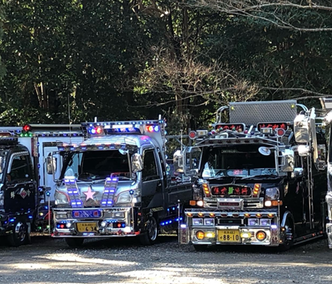 新年最初のデコトラ行事として親しまれているのが交通安全祈願。菊水会をはじめ、全国のアートトラックや旧車団体が参加する年初めの恒例行事です。ピカピカに磨いた愛車で神社に参拝し、安全運転と無事故を祈願する参加者の姿は毎年の風物詩。派手な展示走行というよりは、落ち着いた雰囲気で始まる一年の幕開けイベントです。地域ごとに開催場所は異なりますが、ファンからの見学や撮影も多く、デコトラ文化の“真面目な一面”を感じられる貴重な機会です。